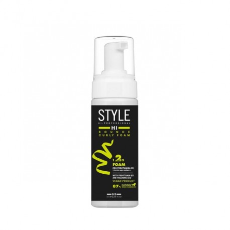 Spuma cu fixare puternica cu Provitamina B5 si Acid hialuronic care ajuta la definirea buclelor, oferind flexibilitate si stralucire. Conține până la 87% ingrediente de origine naturală. Spuma formează o peliculă în jurul părului tău, obținând astfel un strat de protecție împotriva agresiunilor externe, oferind tratament și îngrijire părului uscat și oferind strălucire și volum. Mod de folosire: se agită înainte de utilizare, aplicați cantitatea necesară în mâini, distribuiți produsul pe păr și lucrați. Nu clăti. Pentru bucle mai definite uscați cu difuzorul.