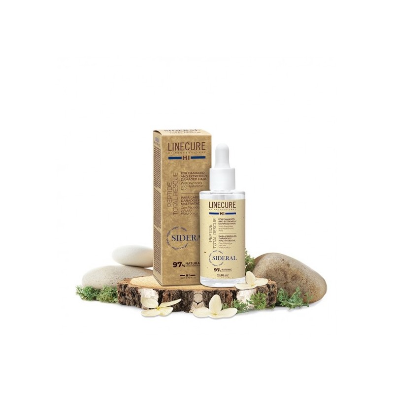 SIDERAL PEPTIDE TOTAL RESCUE ELIXIR 50ML - 97% natural - ser îmbogățit cu petide, recomandat pentru păr deteriorat și extrem de degradat în urma proceselor termice/chimice (vopsit/ decolorat). Formula vegană conține peptide bazate pe structura cheratinei naturale și a proteinelor sale. Repară, hrănește, reduce ruperea firelor de păr, îmbunătățește rezistența și reechilibrează Ph-ul acestora. Bogat in Vitamina E, Acid Hyaluronic, Macadamia, derivate din ulei de măsline, ulei de orez, Betaină, completează eficacitatea și rezultatele produsului. Mod de utilizare: se agită înainte de utilizare. În procese chimice: în colorare se adaugă 3 pipete(2.4g) per tub; în colorare nuanțe superblond se adaugă 4 pipete (3.2g) per tub. În procesul de decolorare se aplică 1 pipetă (0.8g) per 10grame. În toate aceste procedee se amestecă și se folosește în mod normal. În tratamente: se adaugă 3-5 pipete (2.4-4g , în funcție de lungimea părului) în produsul de tratament folosit. Se aplică pe păr de la jumătatea lungimii către vârfuri, se lasă să acționeze câteva minute, după care se clătește. Tratament leave-in (fără clătire) : se aplică 3-5 pipete (2.4-4g) pe părul umed, de la mijloc către vârfuri, se masează în păr,nuse clătește. Pe părul uscat, se aplică 1-2 pipete (0.8-1.6g), depinde de lungime părului, dar numai pe vârfuri.